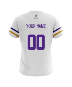 Designed, cut and sewn by hand stay 40% cooler with CoolWick. Our Minnesota Away Football CoolWick Bowling Jerseys are made of two different fabrics with the back being our CoolWick technology fabric that helps wick moisture away and helps air flow more easily through the fibers.