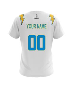 Designed, cut and sewn by hand stay 40% cooler with CoolWick. Our Los Angeles Light Blue Away Football CoolWick Bowling Jerseys are made of two different fabrics with the back being our CoolWick technology fabric that helps wick moisture away and helps air flow more easily through the fibers.