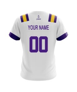 Designed, cut and sewn by hand stay 40% cooler with CoolWick. Our Louisiana Away Football CoolWick Bowling Jerseys are made of two different fabrics with the back being our CoolWick technology fabric that helps wick moisture away and helps air flow more easily through the fibers.