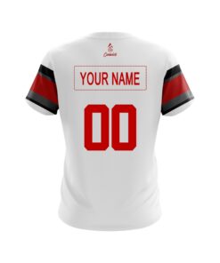 Designed, cut and sewn by hand stay 40% cooler with CoolWick. Our Ohio Away Football CoolWick Bowling Jerseys are made of two different fabrics with the back being our CoolWick technology fabric that helps wick moisture away and helps air flow more easily through the fibers.