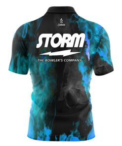 Stay 40% cooler with CoolWick. Our Storm Blue Flame Quick Ship CoolWick Sash Zip Bowling Jerseys are made of CoolWick technology fabric that helps wick moisture away and helps air flow more easily through the fibers.