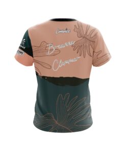 Stay 40% cooler with CoolWick. Our Breanna Clemmer Sage Coral Palms CoolWick Bowling Jerseys are made of two different fabrics. The back being our CoolWick technology fabric that helps wick moisture away and helps air flow more easily through the fibers.