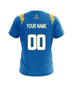 Designed, cut and sewn by hand stay 40% cooler with CoolWick. Our Los Angeles Light Blue Football CoolWick Bowling Jerseys are made of two different fabrics with the back being our CoolWick technology fabric that helps wick moisture away and helps air flow more easily through the fibers.