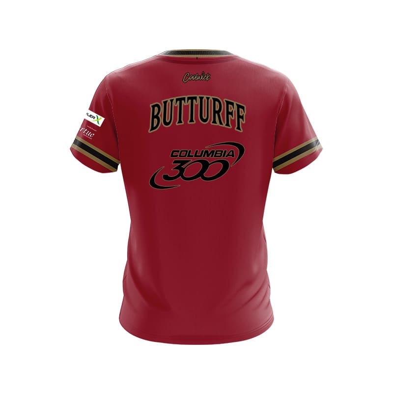 JaColumbia 300 Jakob Butturff Red Starburst CoolWick Bowling Jersey