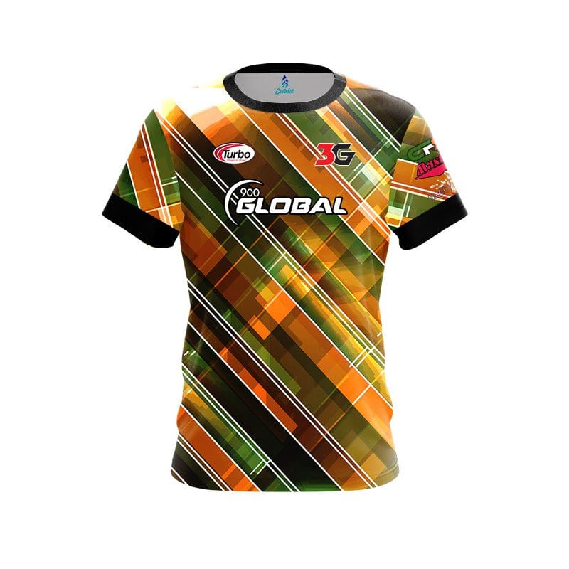 900 Global Chris Sloan Orange Green Hatched Lines CoolWick Bowling Jersey