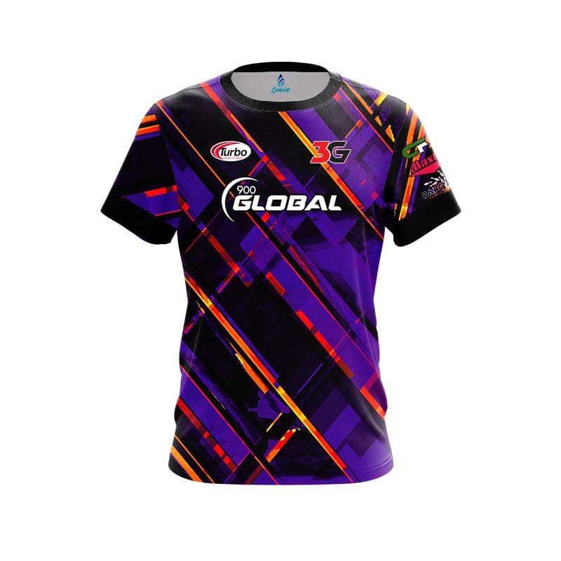 900 Global Chris Sloan Purple Orange Hatched Lines CoolWick Bowling Jersey