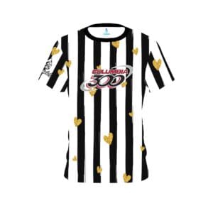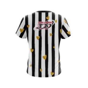 Columbia 300 Valentines Black and White Stripes Hearts Coolwick Bowling Jersey