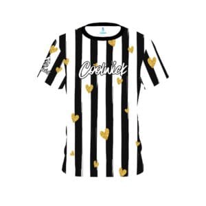 Signature logo Valentines Black and White Stripes Hearts Coolwick Bowling Jersey