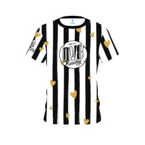 DV8 Valentines Black and White Stripes Coolwick Bowling Jersey