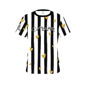 Pyramid Valentines Black and White Stripes Coolwick Bowling Jersey