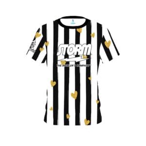 Storm Valentines Black and White Stripes Coolwick Bowling Jersey