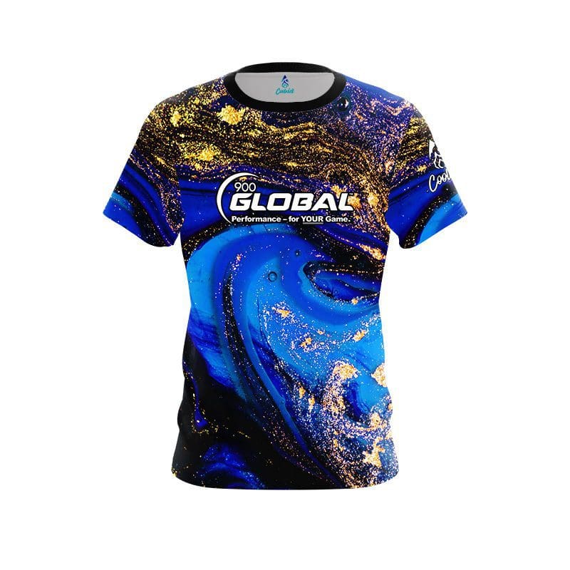 900 Global Blue and Gold Liquid Marble CoolWick Bowling Jersey