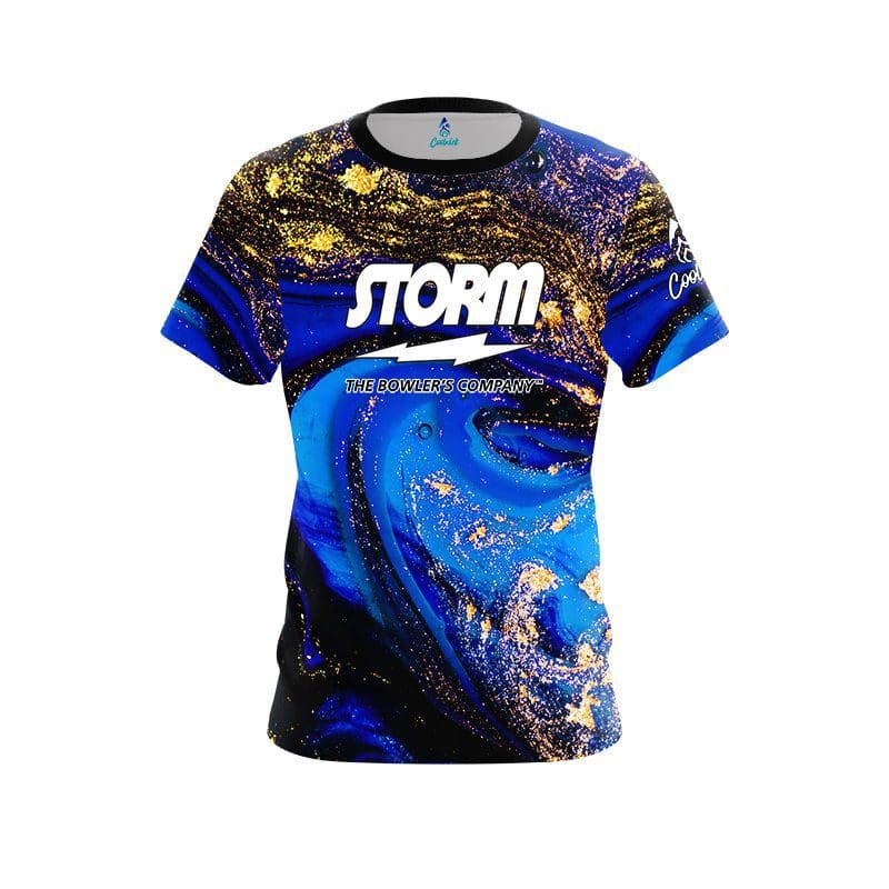 Storm Blue and Gold Liquid Marble CoolWick Bowling Jersey