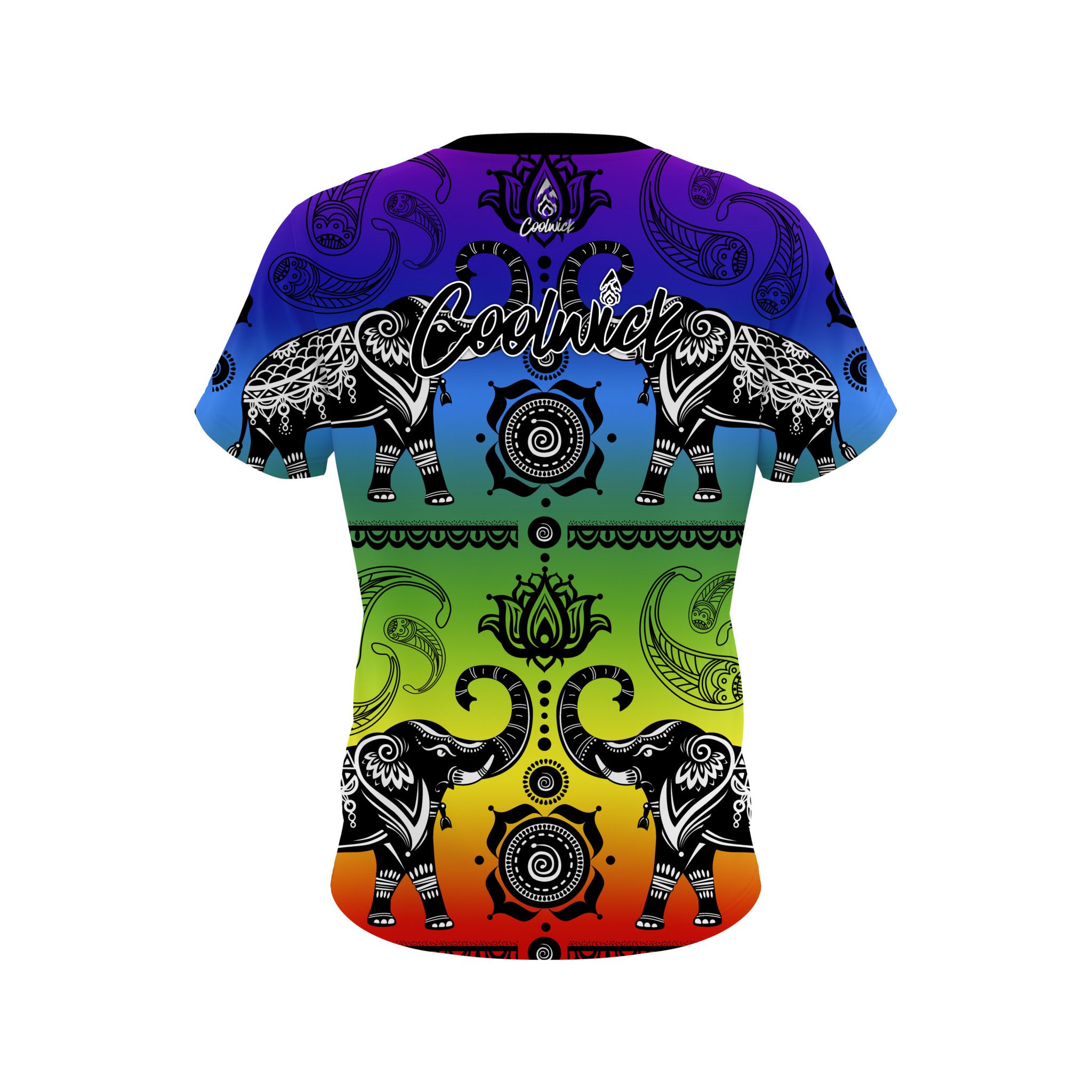 900 Global Tribal Elephants Rainbow CoolWick Bowling Jersey