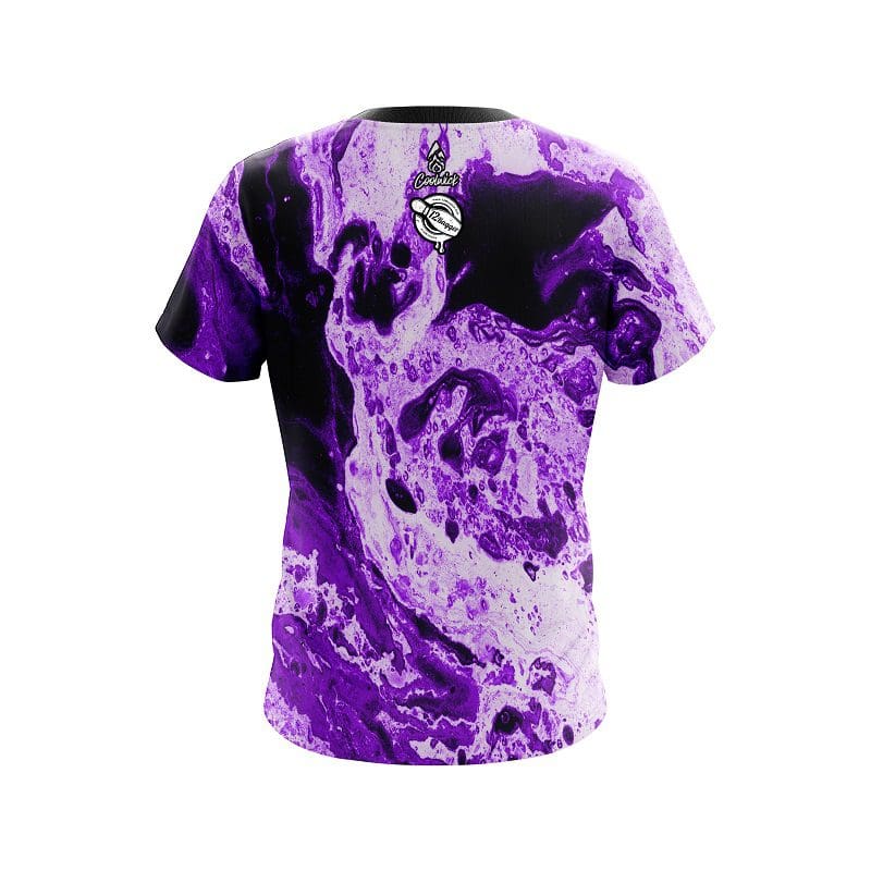 Stay 40% cooler with CoolWick. Our 12 Bagger Marble Purple CoolWick Bowling Jerseys are made of two different fabrics with the back being our CoolWick technology fabric that helps wick moisture away and helps air flow more easily through the fibers.