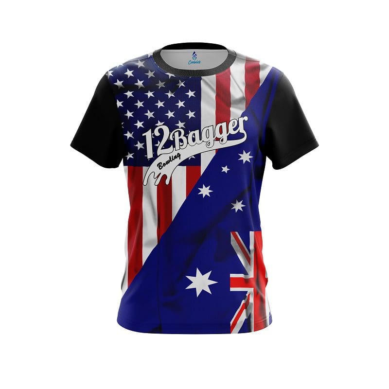 Stay 40% cooler with CoolWick. Our 12 Bagger Australia Flag Bowling Jerseys are made of two different fabrics with the back being our CoolWick technology fabric that helps wick moisture away and helps air flow more easily through the fibers.