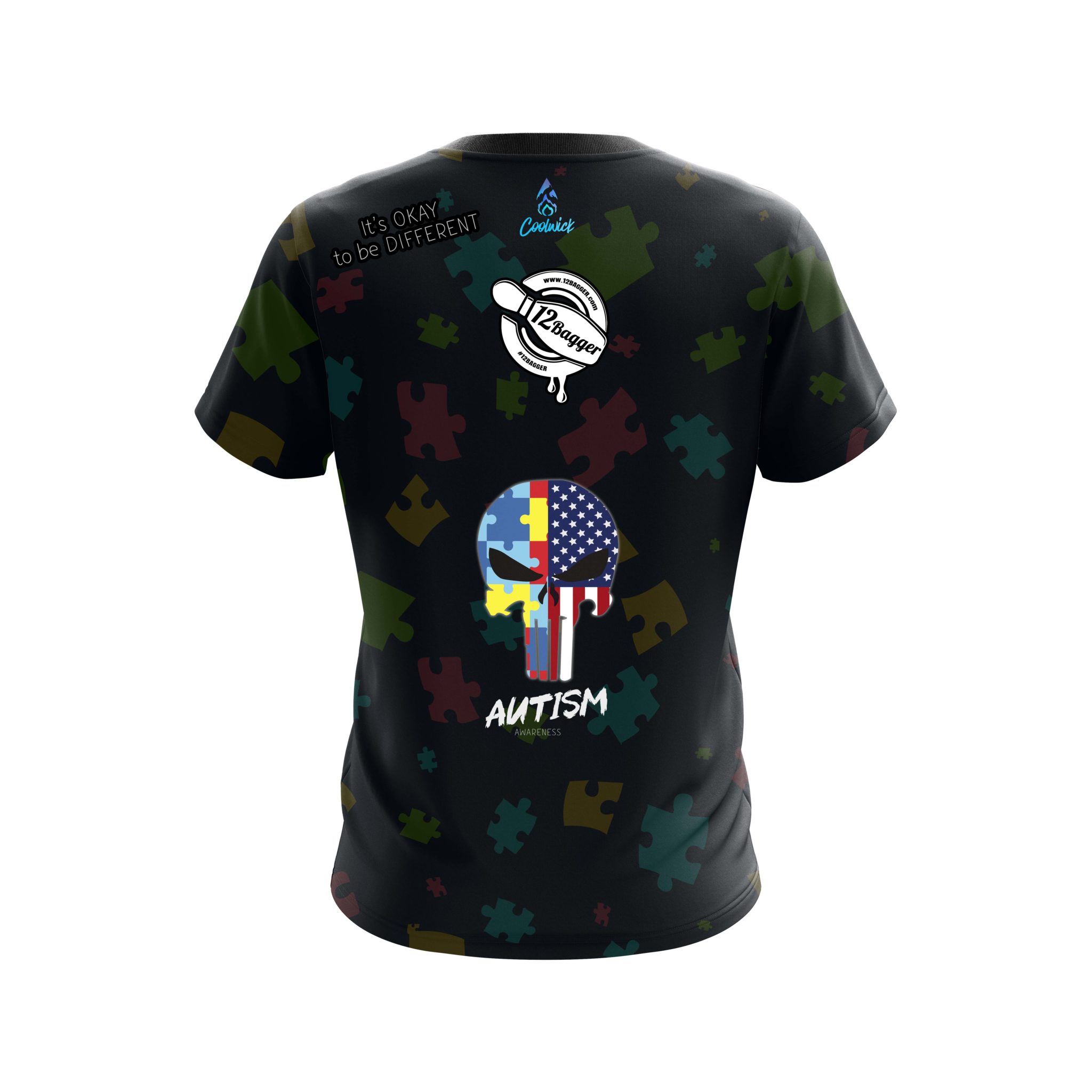 Stay 40% cooler with CoolWick. Our 12Bagger Bowling Autism Punisher Coolwick Jerseys are made of two different fabrics with the back being our CoolWick technology fabric that helps wick moisture away and helps air flow more easily through the fibers.