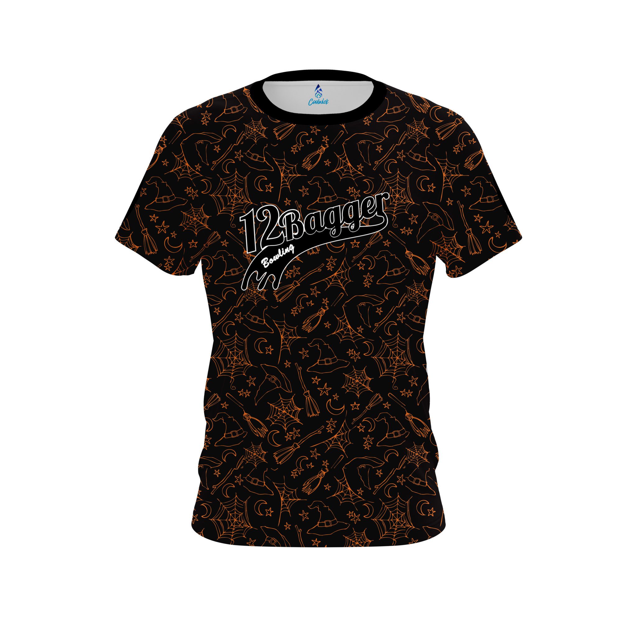 Stay 40% cooler with CoolWick. Our 12Bagger Bowling Halloween Witches Coolwick Jerseys are made of two different fabrics with the back being our CoolWick technology fabric that helps wick moisture away and helps air flow more easily through the fibers.
