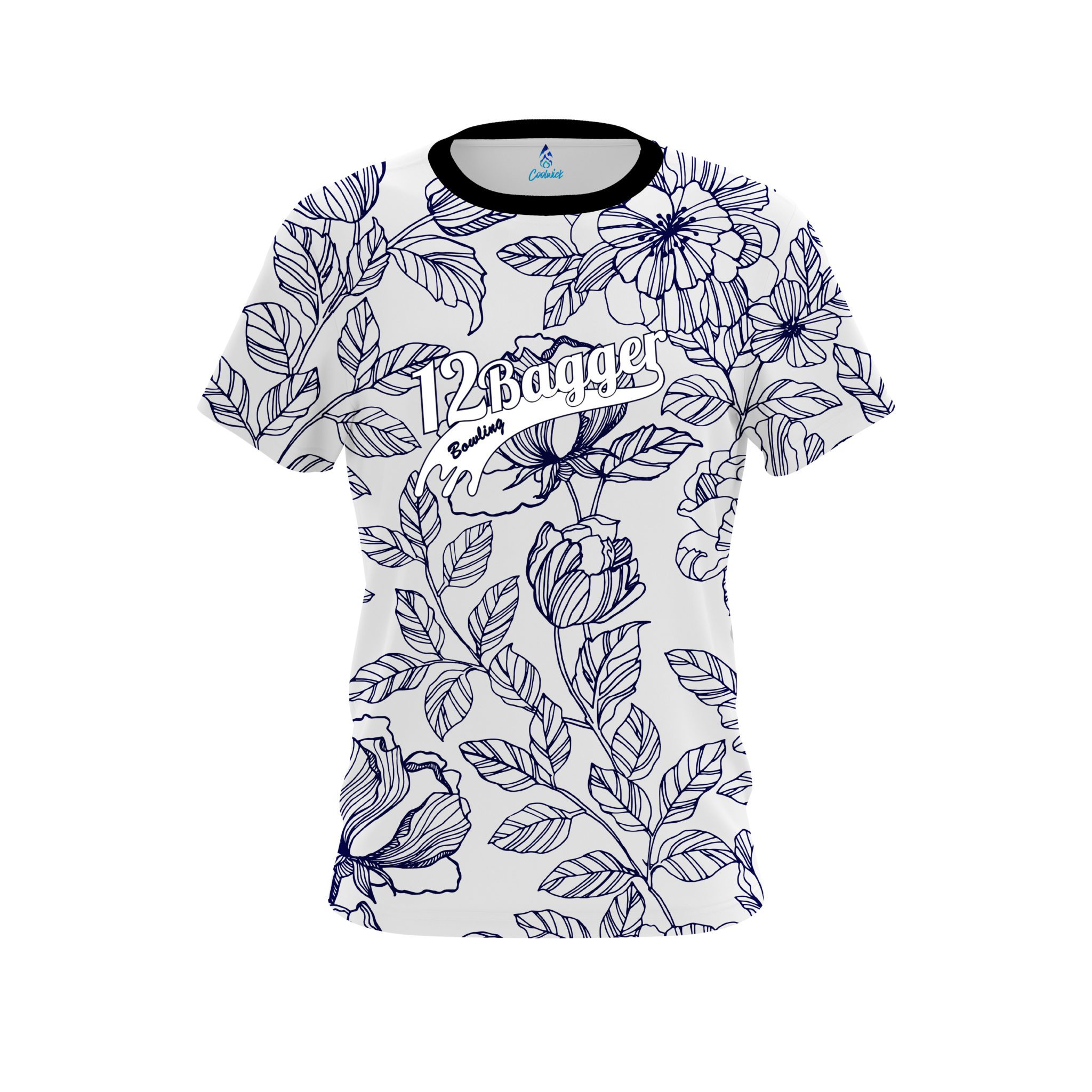 Stay 40% cooler with CoolWick. Our 12Bagger Bowling Navy Flower Tattoo Coolwick Jerseys are made of two different fabrics with the back being our CoolWick technology fabric that helps wick moisture away and helps air flow more easily through the fibers.