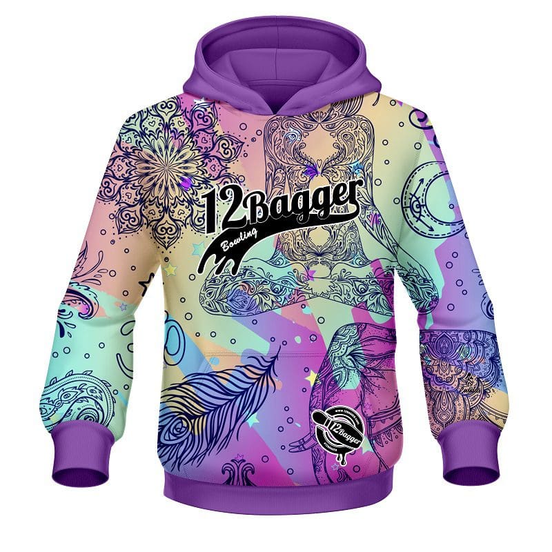Step up your bowling game with this cool and comfortable 12Bagger Bowling Prismatic Tapestry CoolWick Dye-Sub Hoodie! Designed, cut and sewn by hand, this hoodie is made to keep you warm and comfy. Whether you’re in it for sport or just looking to make a statement, add this stylish bowling hoodie to your wardrobe today!
