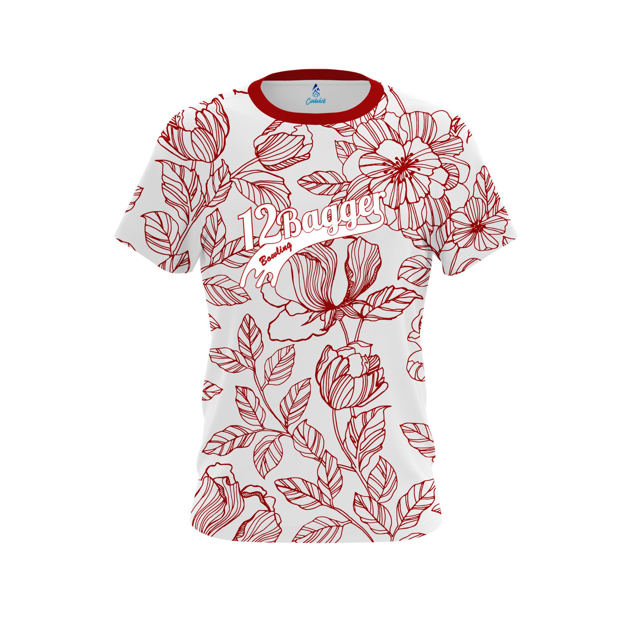 Stay 40% cooler with CoolWick. Our 12Bagger Bowling Red Flower Tattoo Coolwick Jerseys are made of two different fabrics with the back being our CoolWick technology fabric that helps wick moisture away and helps air flow more easily through the fibers.