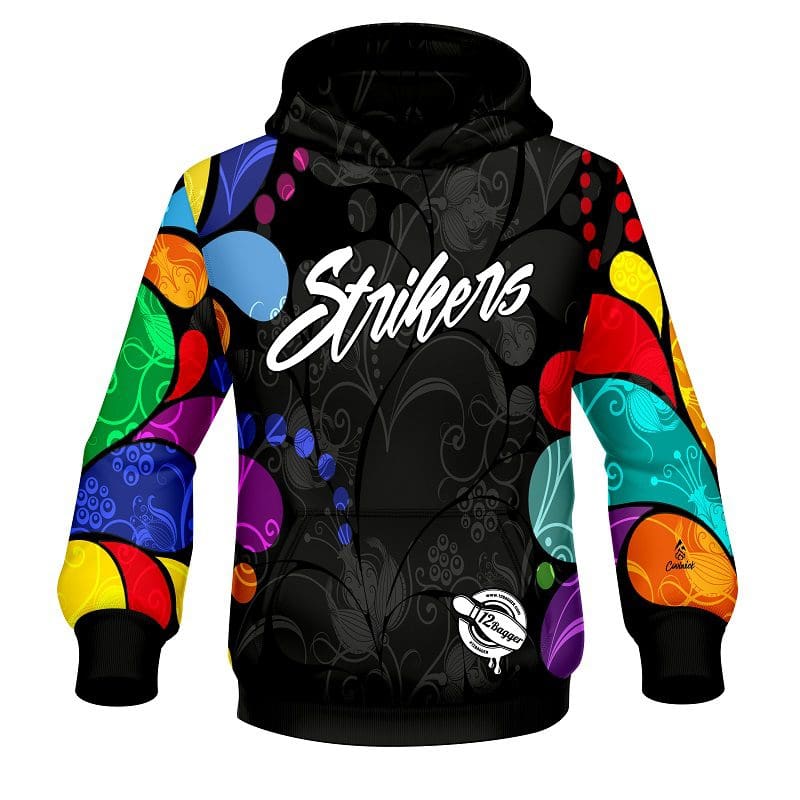 Step up your bowling game with this cool and comfortable 12Bagger Bowling Strikers Stained Glass CoolWick Dye-Sub Hoodie! Designed, cut and sewn by hand, this hoodie is made to keep you warm and comfy. Whether you’re in it for sport or just looking to make a statement, add this stylish bowling hoodie to your wardrobe today!