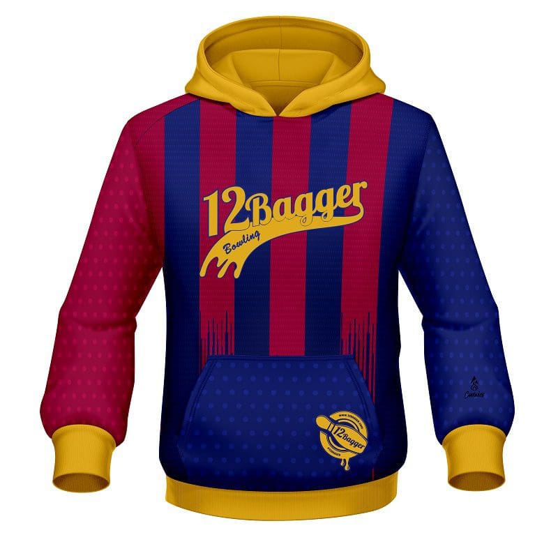Step up your bowling game with this cool and comfortable 12Bagger Bowling Burgundy Stripes CoolWick Dye-Sub Hoodie! Designed, cut and sewn by hand, this hoodie is made to keep you warm and comfy. Whether you’re in it for sport or just looking to make a statement, add this stylish bowling hoodie to your wardrobe today!