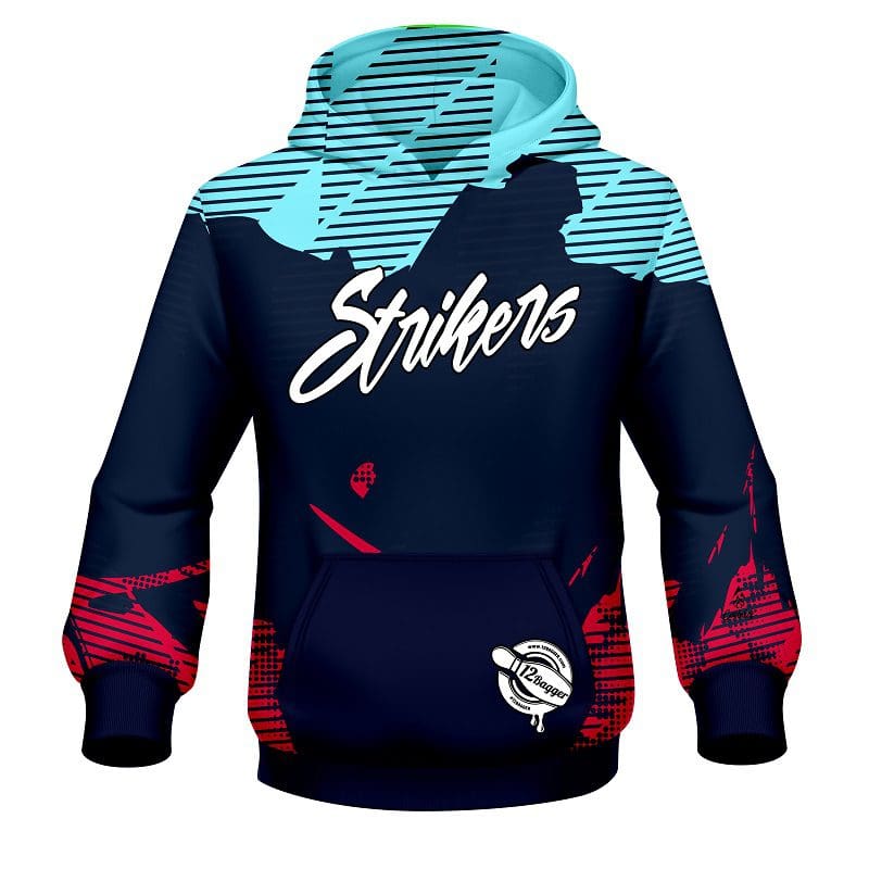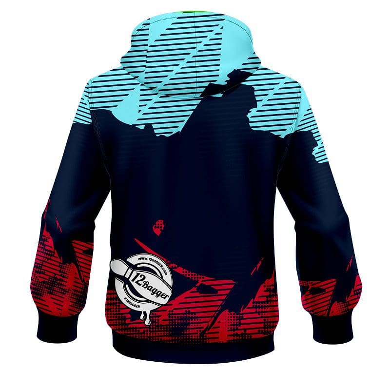 Step up your bowling game with this cool and comfortable 12Bagger Bowling Strikers Jagged Blue and Pink Coolwick Dye-Sub Hoodie! Designed, cut and sewn by hand, this hoodie is made to keep you warm and comfy. Whether you’re in it for sport or just looking to make a statement, add this stylish bowling hoodie to your wardrobe today!