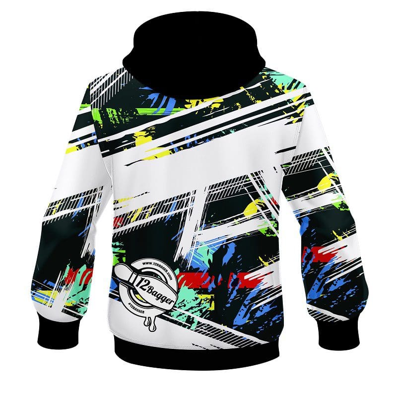 Step up your bowling game with this cool and comfortable 12Bagger Bowling Strikers Whiteout CoolWick Dye-Sub Hoodie! Designed, cut and sewn by hand, this hoodie is made to keep you warm and comfy. Whether you’re in it for sport or just looking to make a statement, add this stylish bowling hoodie to your wardrobe today!