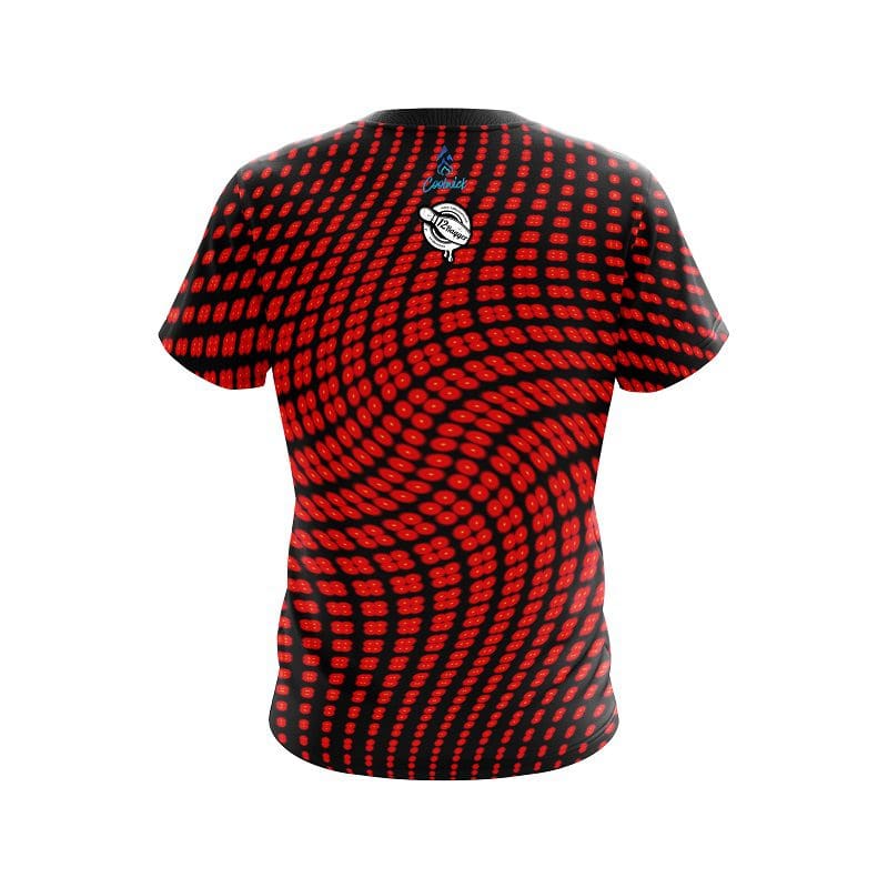 Stay 40% cooler with CoolWick. Our 12Bagger Dyanamic Flux Red CoolWick Bowling Jerseys are made of two different fabrics with the back being our CoolWick technology fabric that helps wick moisture away and helps air flow more easily through the fibers.