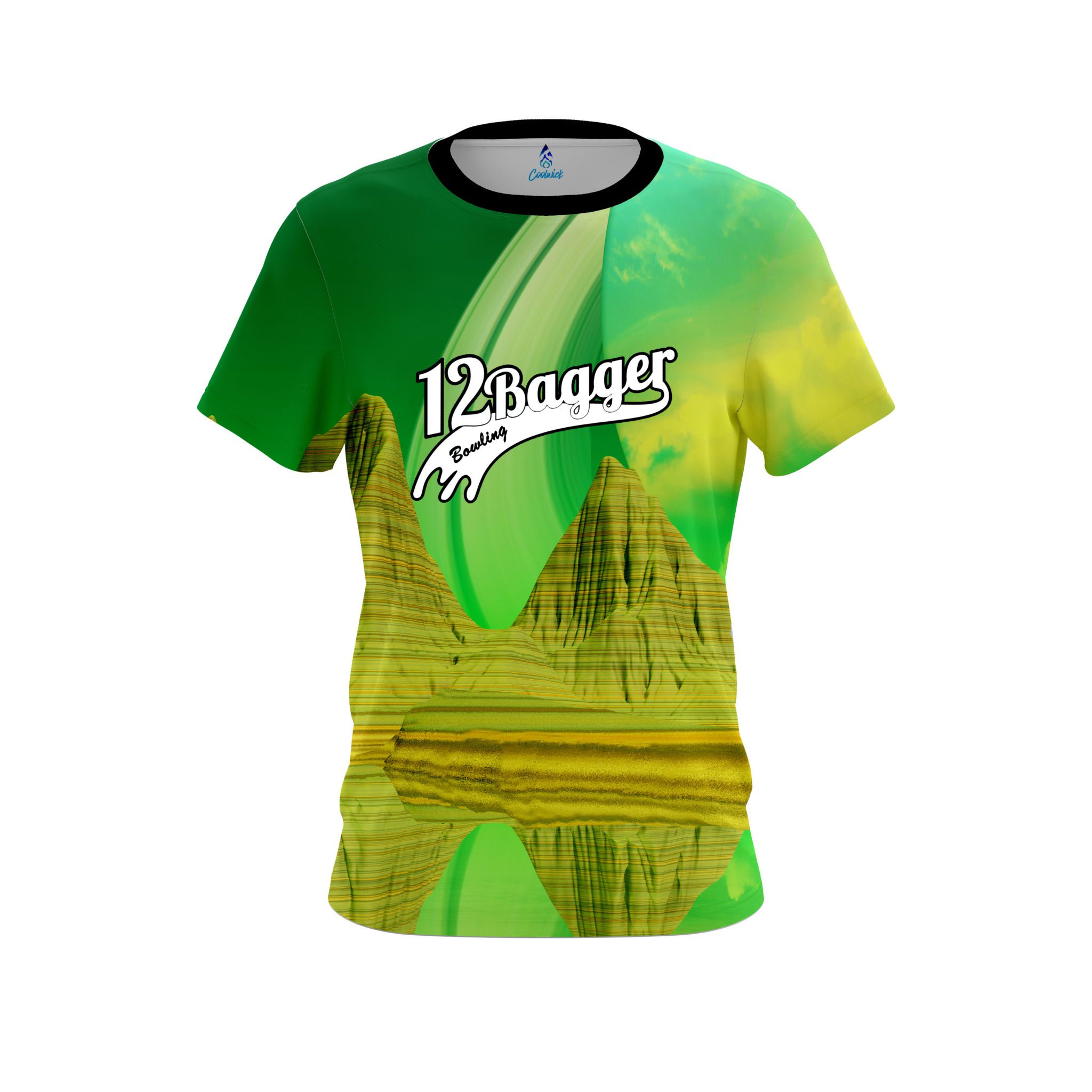 Stay 40% cooler with CoolWick. Our 12Bagger Bowling Pyramid Lake Coolwick Jerseys are made of two different fabrics with the back being our CoolWick technology fabric that helps wick moisture away and helps air flow more easily through the fibers.