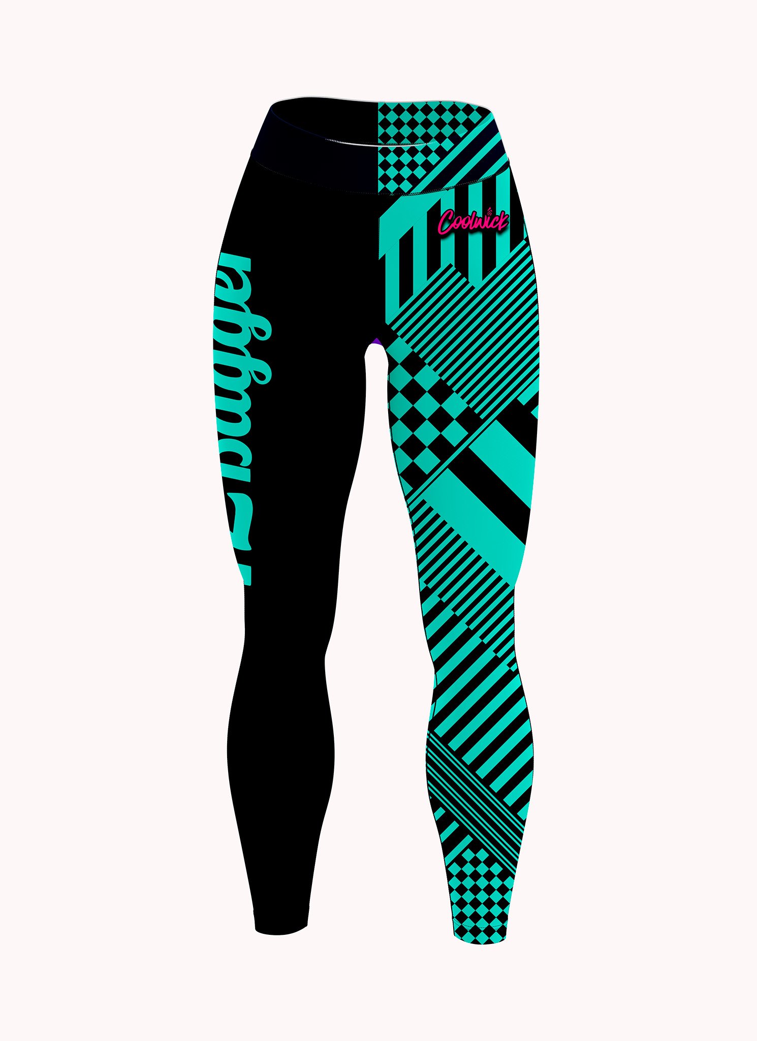Our new 12Bagger Reign Black Teal Stripes CoolWick Leggings are a must-have for your wardrobe. They offer the perfect combination of fit, comfort, and sleek style.