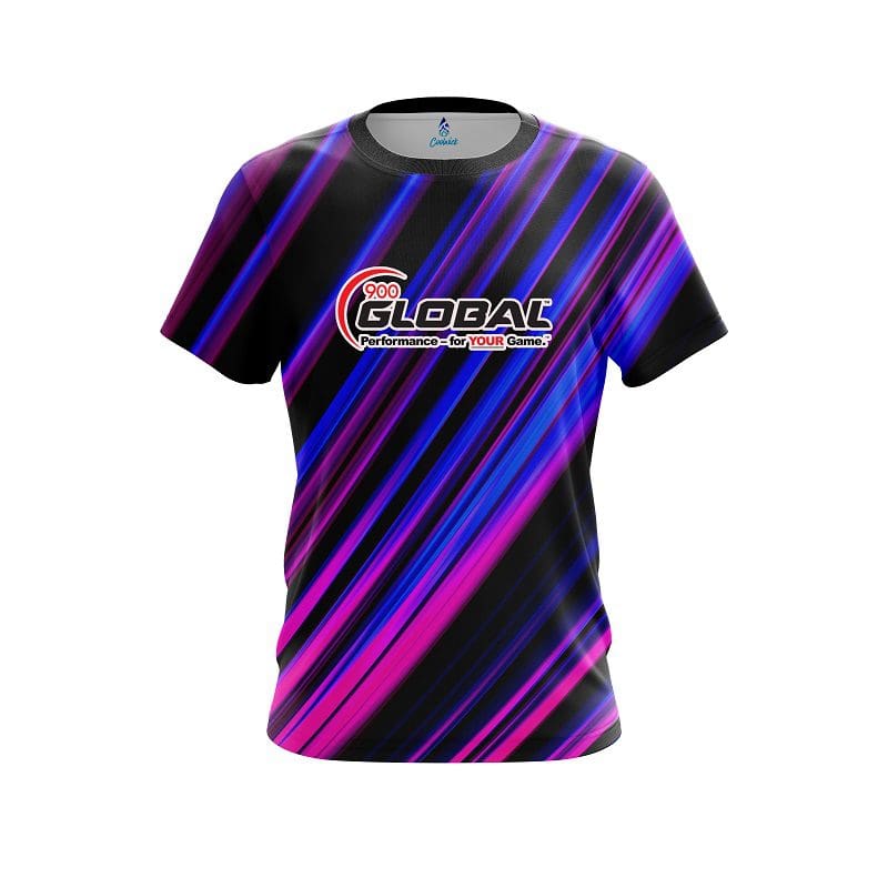 Stay 40% cooler with CoolWick. Our 900 Global Blue And Pink Digital Stripe CoolWick Bowling Jerseys are made of two different fabrics with the back being our CoolWick technology fabric that helps wick moisture away and helps air flow more easily through the fibers.