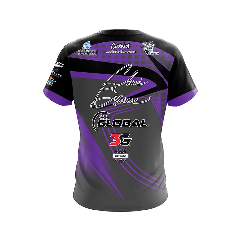 Shop now and elevate your game with the 900 Global Chris Barnes Grey Purple Slash CoolWick Bowling Jersey – exceeding the benchmark of performance and style.