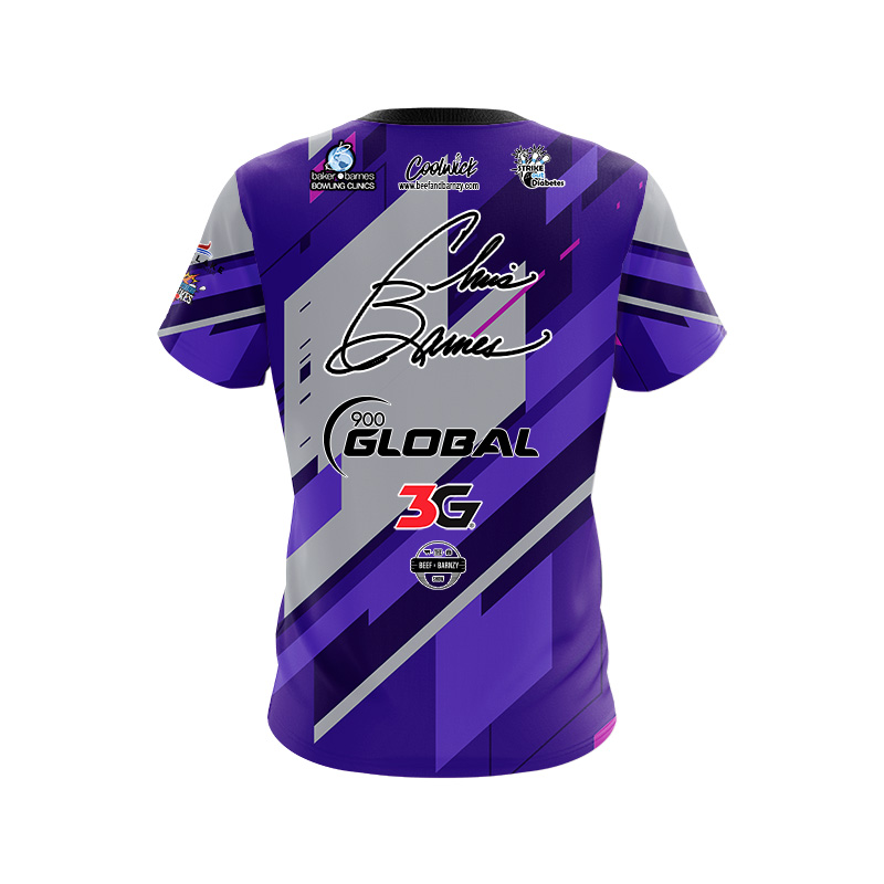 Gear up for a remarkable experience of performance, comfort, and style all rolled into one! Introducing the breathtaking 900 Global Chris Barnes Purple Grey Mid Lane CoolWick Bowling Jersey – meticulously crafted with the latest custom design by CoolWick Staffer and Professional Bowler, Chris Barnes!