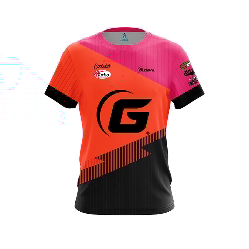 Gear up for a remarkable experience of performance, comfort, and style all rolled into one! Introducing the breathtaking 900 Global Chris Sloan Orange Pink Velocity CoolWick Bowling Jersey – meticulously crafted with the latest custom design by Professional Bowler and CoolWick Staffer, Chris Sloan!