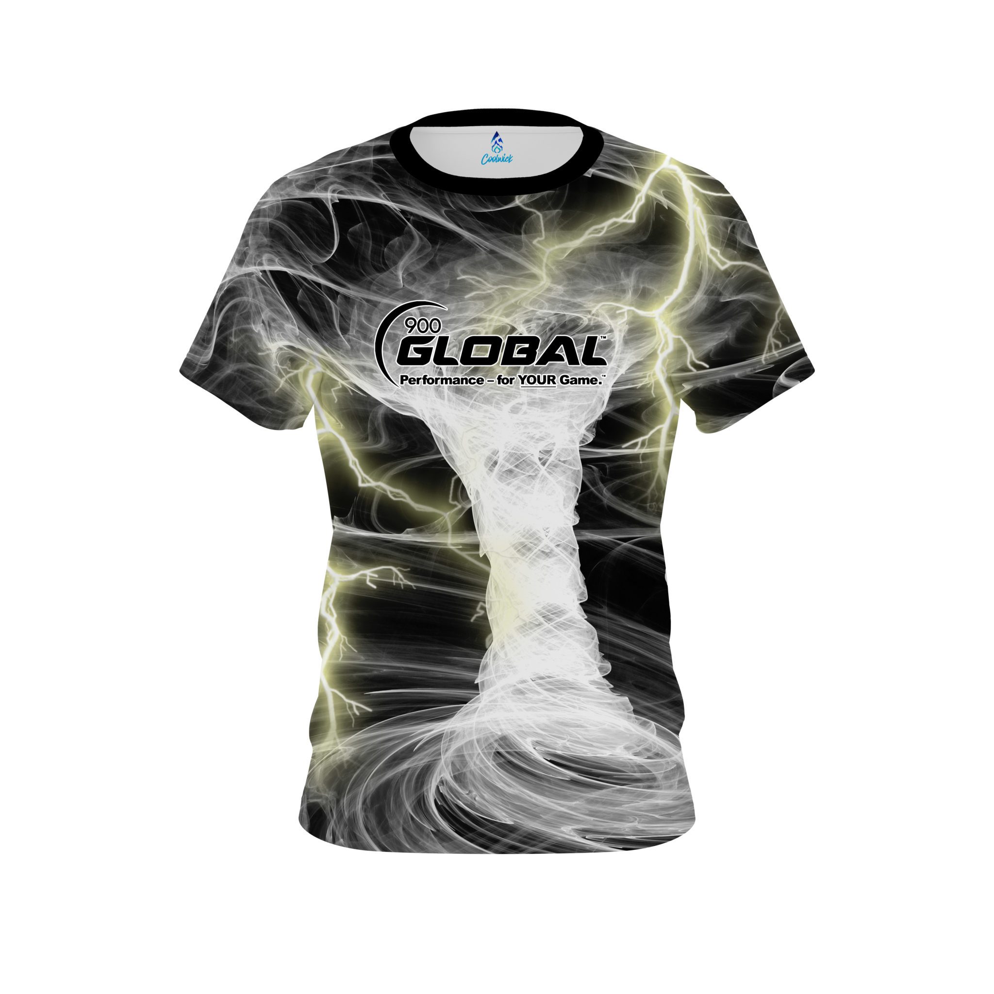 Stay 40% cooler with CoolWick. Our 900 Global Electrical Tornado White CoolWick Bowling Jerseys are made of two different fabrics with the back being our CoolWick technology fabric that helps wick moisture away and helps air flow more easily through the fibers.