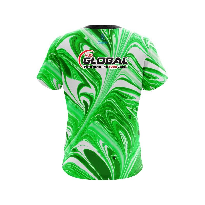Stay 40% cooler with CoolWick. Our 900 Global Green And White Liquid Swirls CoolWick Bowling Jerseys are made of two different fabrics with the back being our CoolWick technology fabric that helps wick moisture away and helps air flow more easily through the fibers.