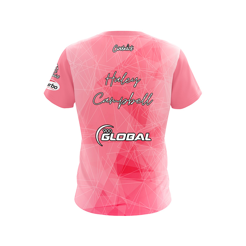 Bowl like the pros with our signature replica jerseys! Introducing the 900 Global Haley Campbell Pink Prism CoolWick Bowling Jersey – designed with innovative fabrics for superior performance. Our dye-sublimated replica bowling jersey features the cutting-edge CoolWick technology fabric. You will be staying 40% cooler as it efficiently wicks away moisture and improves airflow.