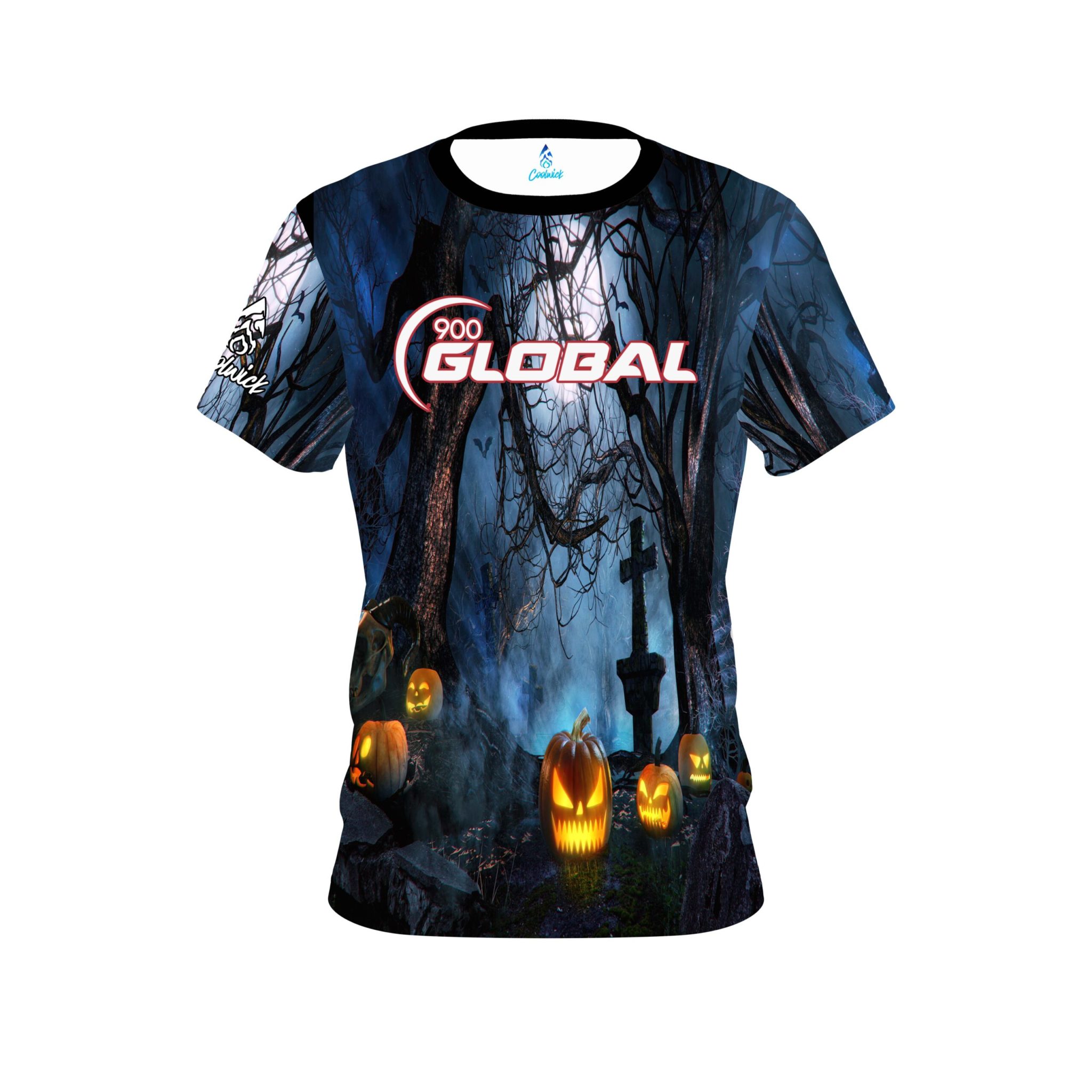 Stay 40% cooler with CoolWick. Our 900 Global Halloween Pumpkin Alley Coolwick Bowling Jerseys are made of two different fabrics with the back being our CoolWick technology fabric that helps wick moisture away and helps air flow more easily through the fibers.