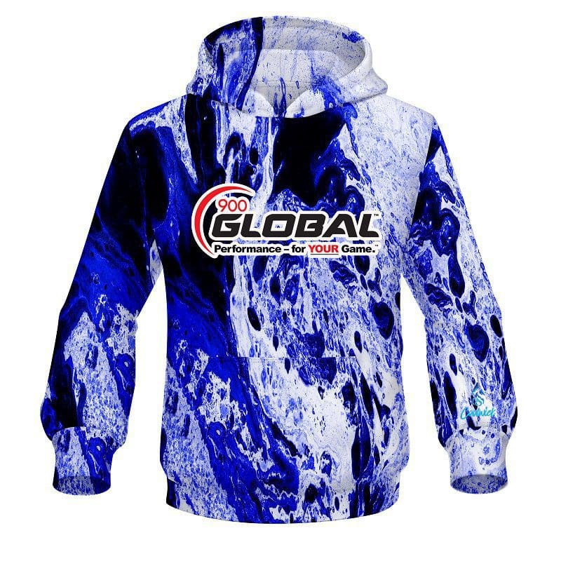 Designed, cut and sewn by hand, our 900 Global Marble Blue CoolWick Bowling Hoodies are made to keep you warm and comfy with HD graphics and eye-catching style.