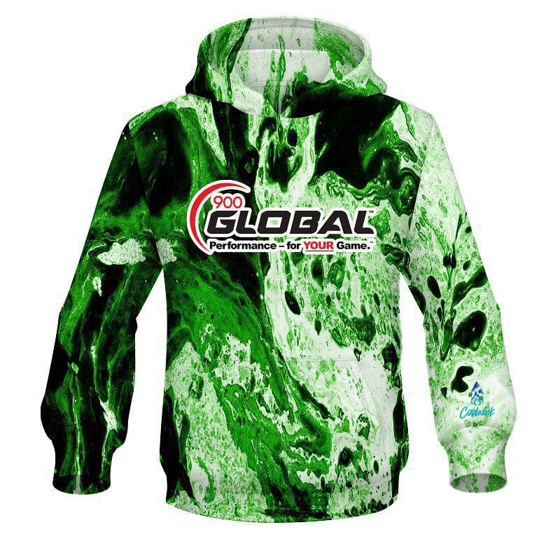 Designed, cut and sewn by hand, our 900 Global Marble Green CoolWick Bowling Hoodies are made to keep you warm and comfy with HD graphics and eye-catching style.