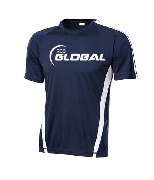 900 Global Men’s Bank Performance Crew Neck Bowling Shirt Dri-Fit Navy White