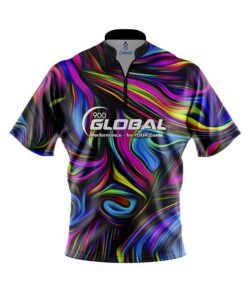 900 Global Psychedelic Swirl Quick Ship CoolWick Sash Zip Bowling Jersey