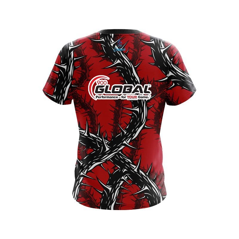 Stay 40% cooler with CoolWick. Our 900 Global Rock And Roll Red Thorns CoolWick Bowling Jersey are made of two different fabrics with the back being our CoolWick technology fabric that helps wick moisture away and helps air flow more easily through the fibers.