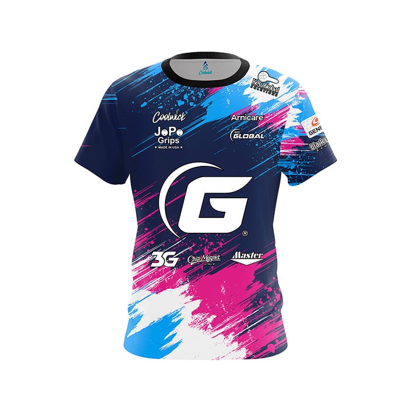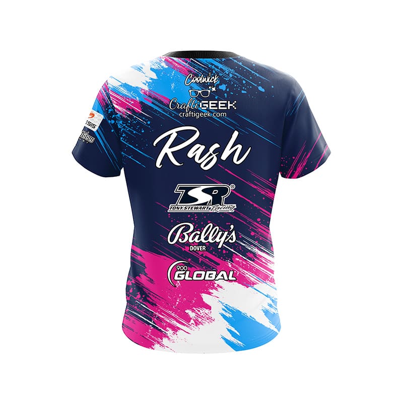 Bowl like the pros with our signature replica jerseys! Introducing the 900 Global Sean Rash Blue Pink Paint Splatter CoolWick Bowling Jersey – designed with innovative fabrics for superior performance. Our dye-sublimated replica bowling jersey features the cutting-edge CoolWick technology fabric. You will be staying 40% cooler as it efficiently wicks away moisture and improves airflow.