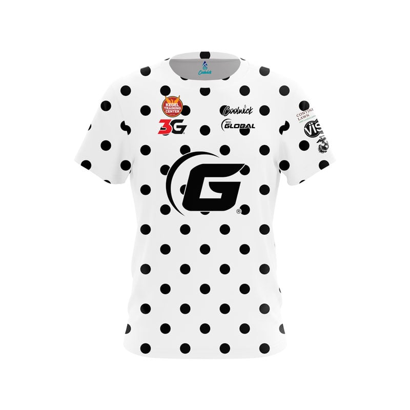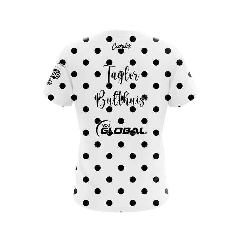 Shop now and elevate your game with the 900 Global Taylor Bulthuis White Black Polka Dots CoolWick Bowling Jersey – exceeding the benchmark of performance and style.
