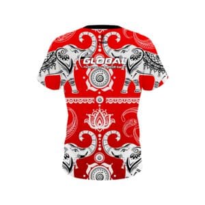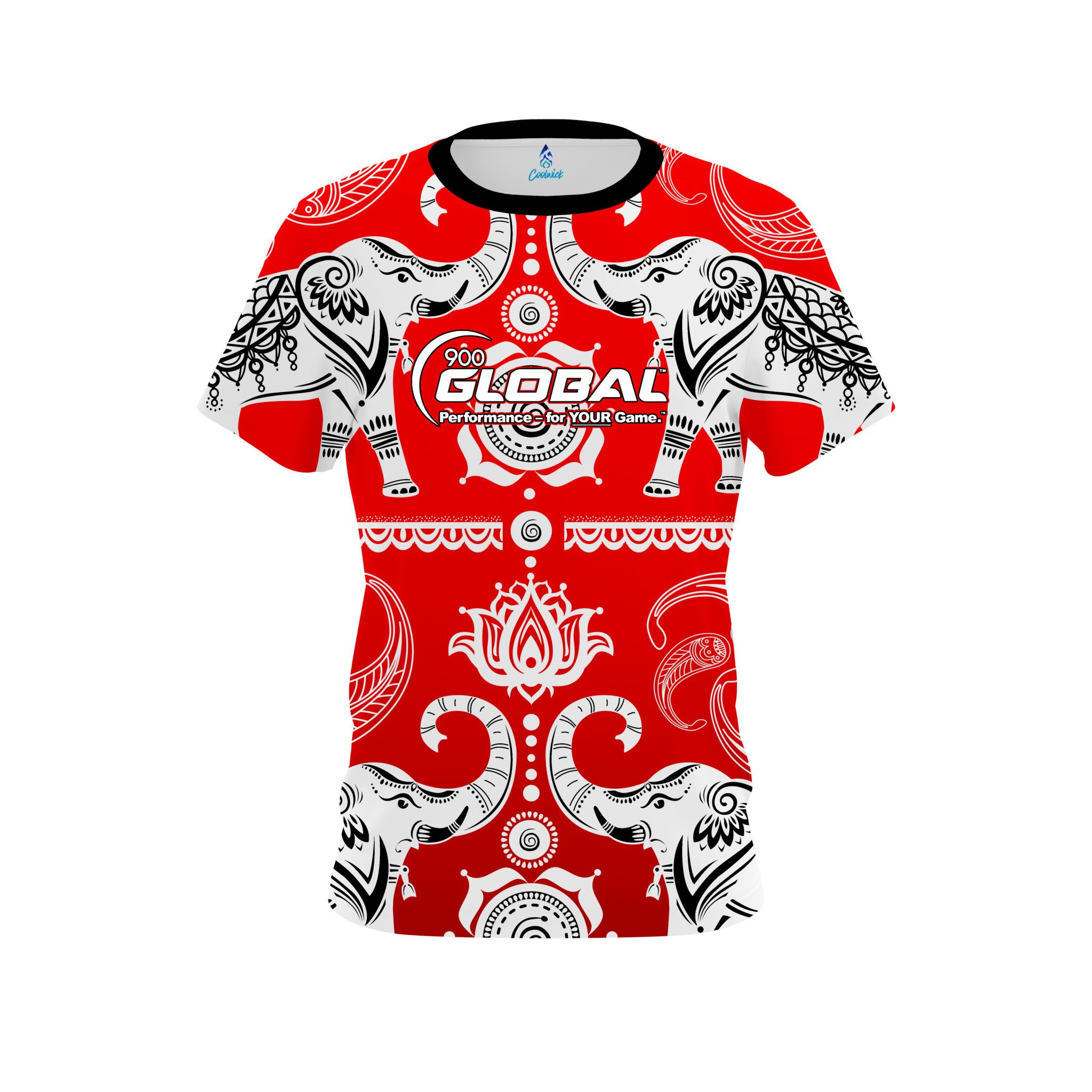 Stay 40% cooler with CoolWick. Our 900 Global Tribal Elephants Red CoolWick Bowling Jersey are made of two different fabrics with the back being our CoolWick technology fabric that helps wick moisture away and helps air flow more easily through the fibers.
