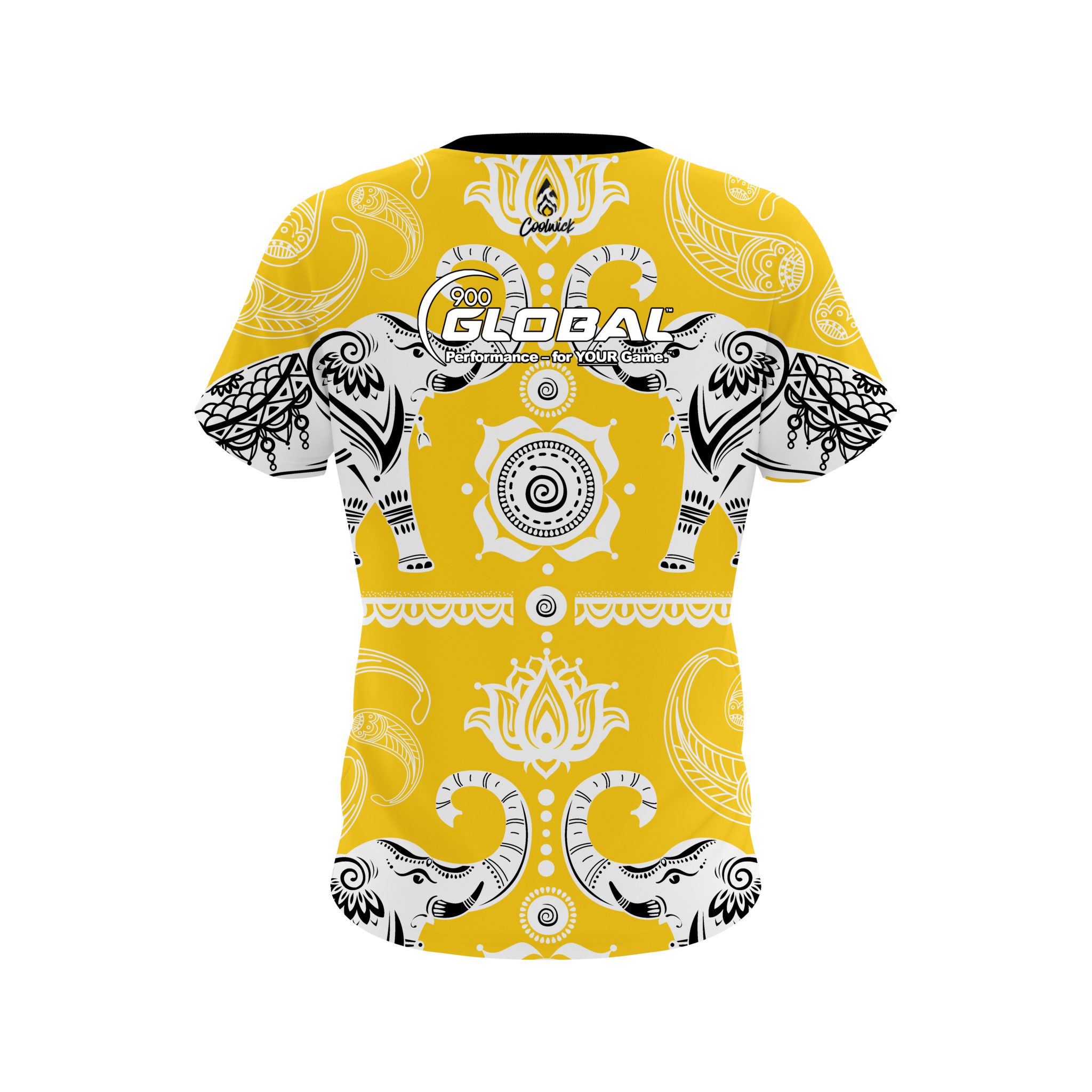 Stay 40% cooler with CoolWick. Our 900 Global Tribal Elephants Yellow CoolWick Bowling Jersey are made of two different fabrics with the back being our CoolWick technology fabric that helps wick moisture away and helps air flow more easily through the fibers.