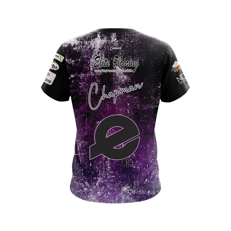 Designed, cut and sewn by hand stay 40% cooler with CoolWick. Our AJ Chapman Purple Grunge Replica CoolWick Bowling Jerseys are made of two different fabrics with the back being our CoolWick technology fabric that helps wick moisture away and helps air flow more easily through the fibers.